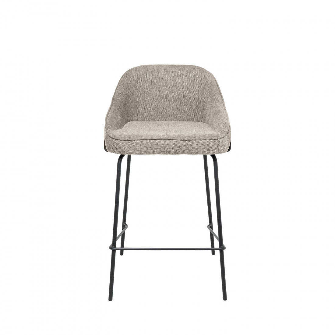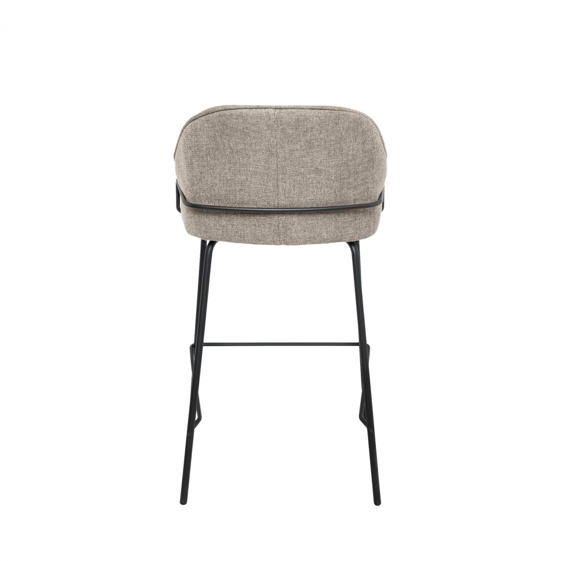 Tapizado en un elegante taupe de poliéster 100%, y con patas y barras traseras/laterales de metal negro, este taburete destaca por su diseño sofisticado, ideal para entornos modernos.