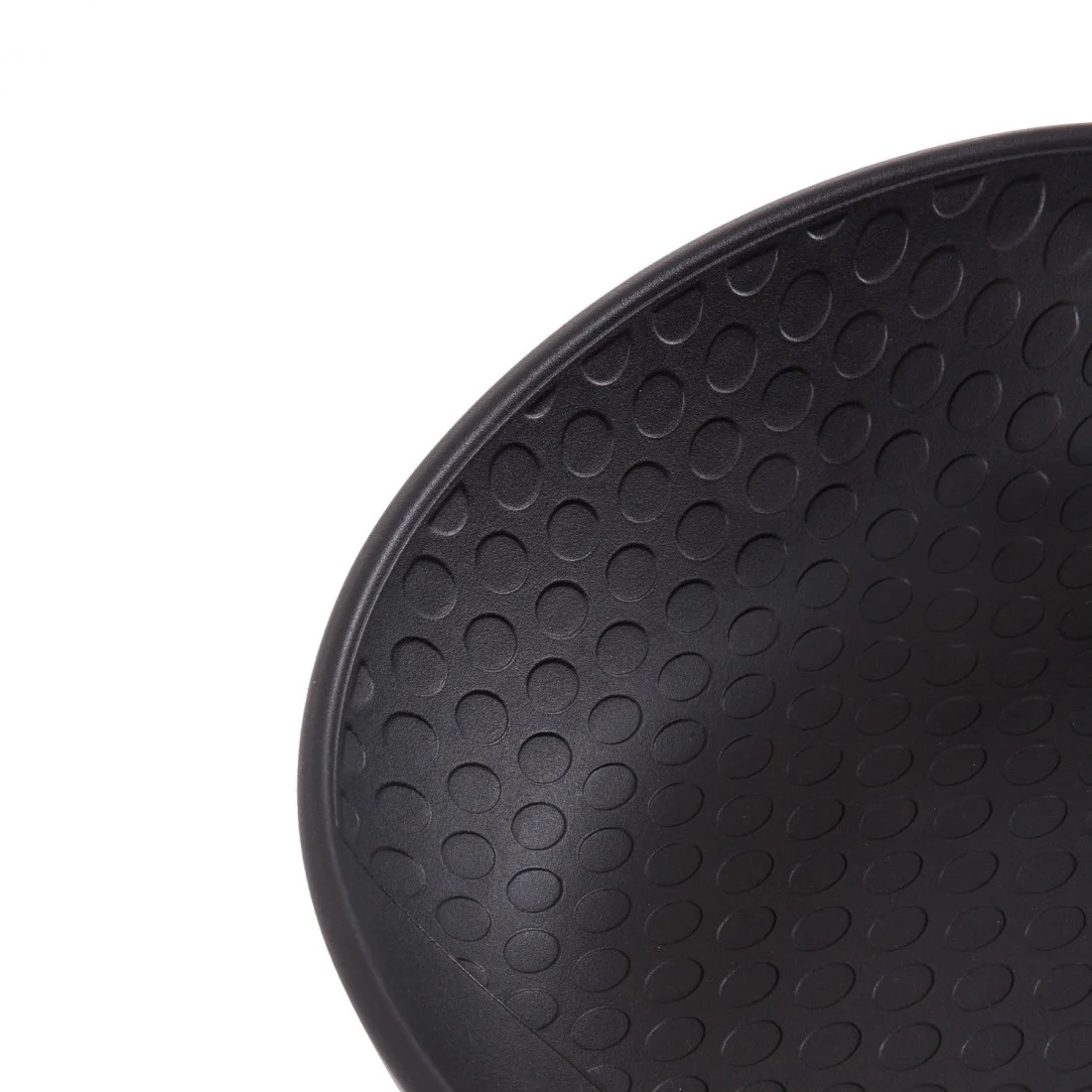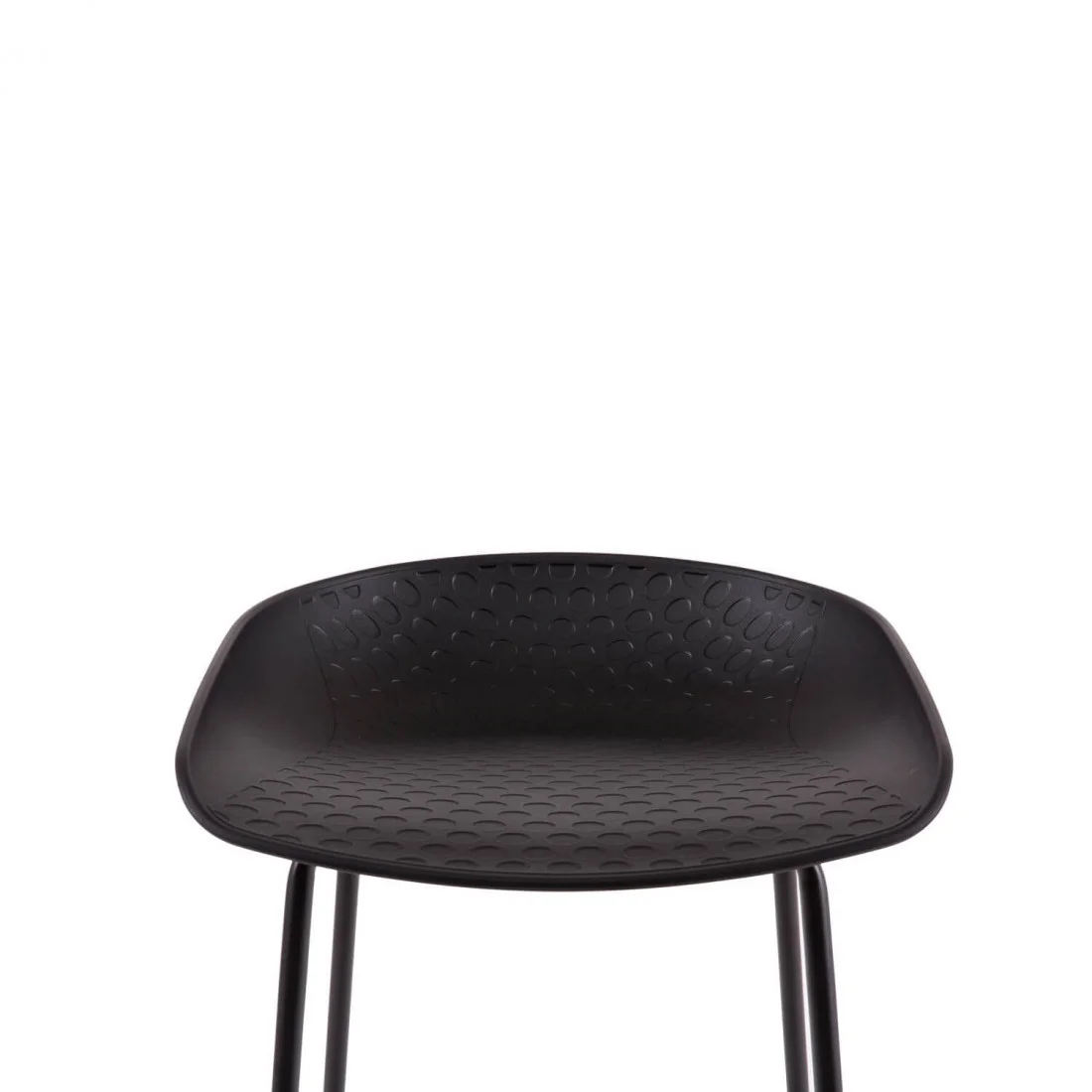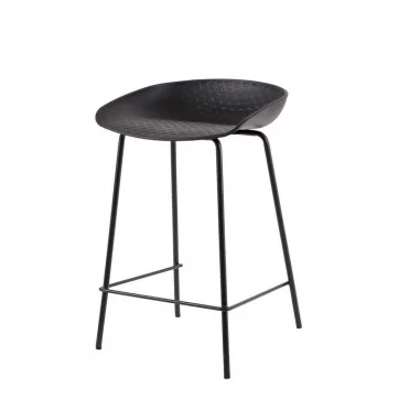 El taburete alto RONIE destaca por su elegante estructura de patas de madera y su asiento de polipropileno negro, diseñado ergonómicamente para ofrecer la máxima comodidad.