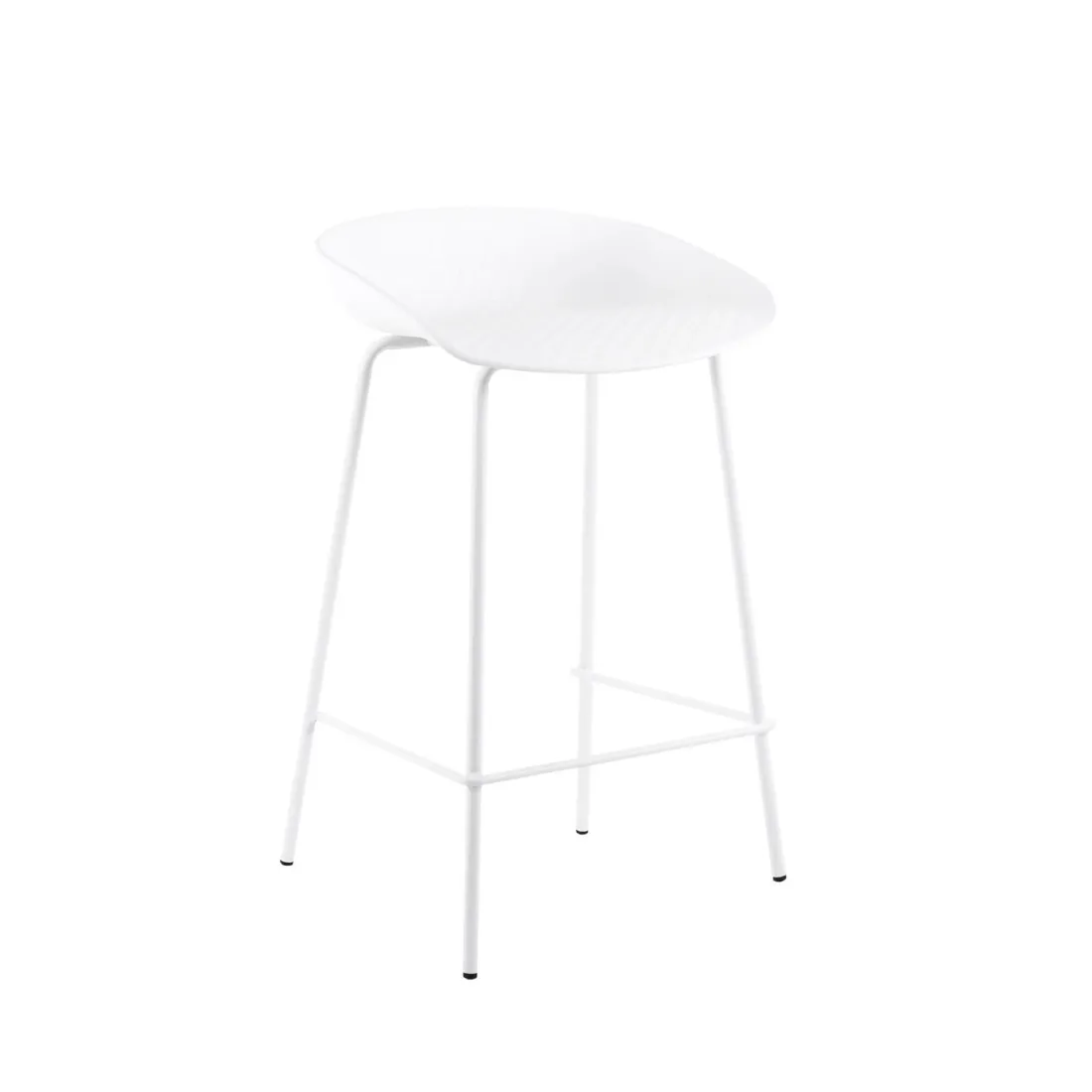 El taburete bajo NETTA combina comodidad y diseño moderno. Está compuesto por una única pieza blanca de polipropileno con grabado circular que forma el asiento y el respaldo, proporcionando mayor resistencia. Su estructura ligeramente cóncava asegura una comodidad excepcional.