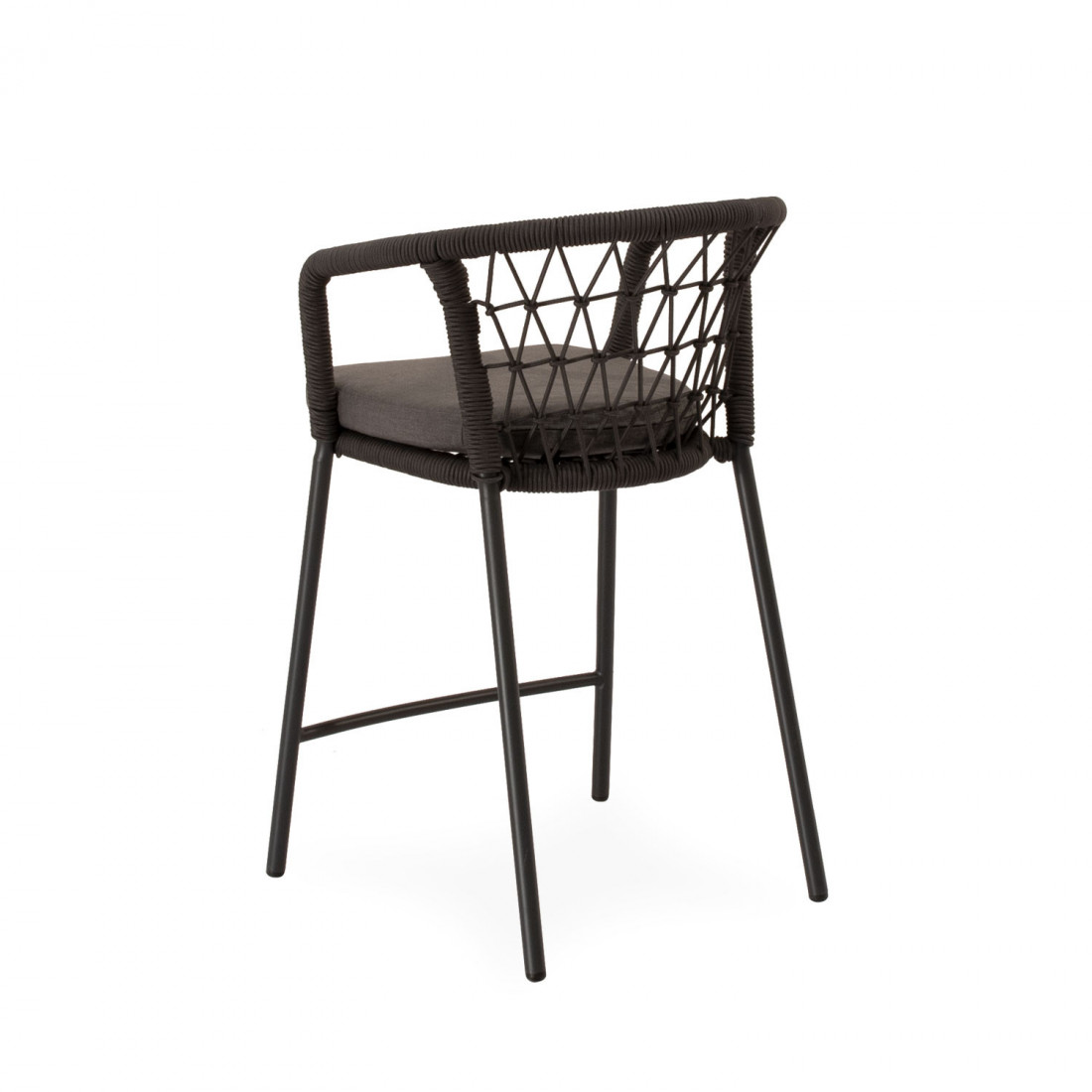 El taburete PIERRE combina un estilo contemporáneo con un diseño pensado para aportar comodidad y frescura a cualquier espacio exterior. Su respaldo curvo, elaborado en cuerda resistente, presenta un entramado lineal que crea un efecto visual ligero y dinámico. Esta estructura no solo envuelve suavemente la espalda, sino que también permite una...