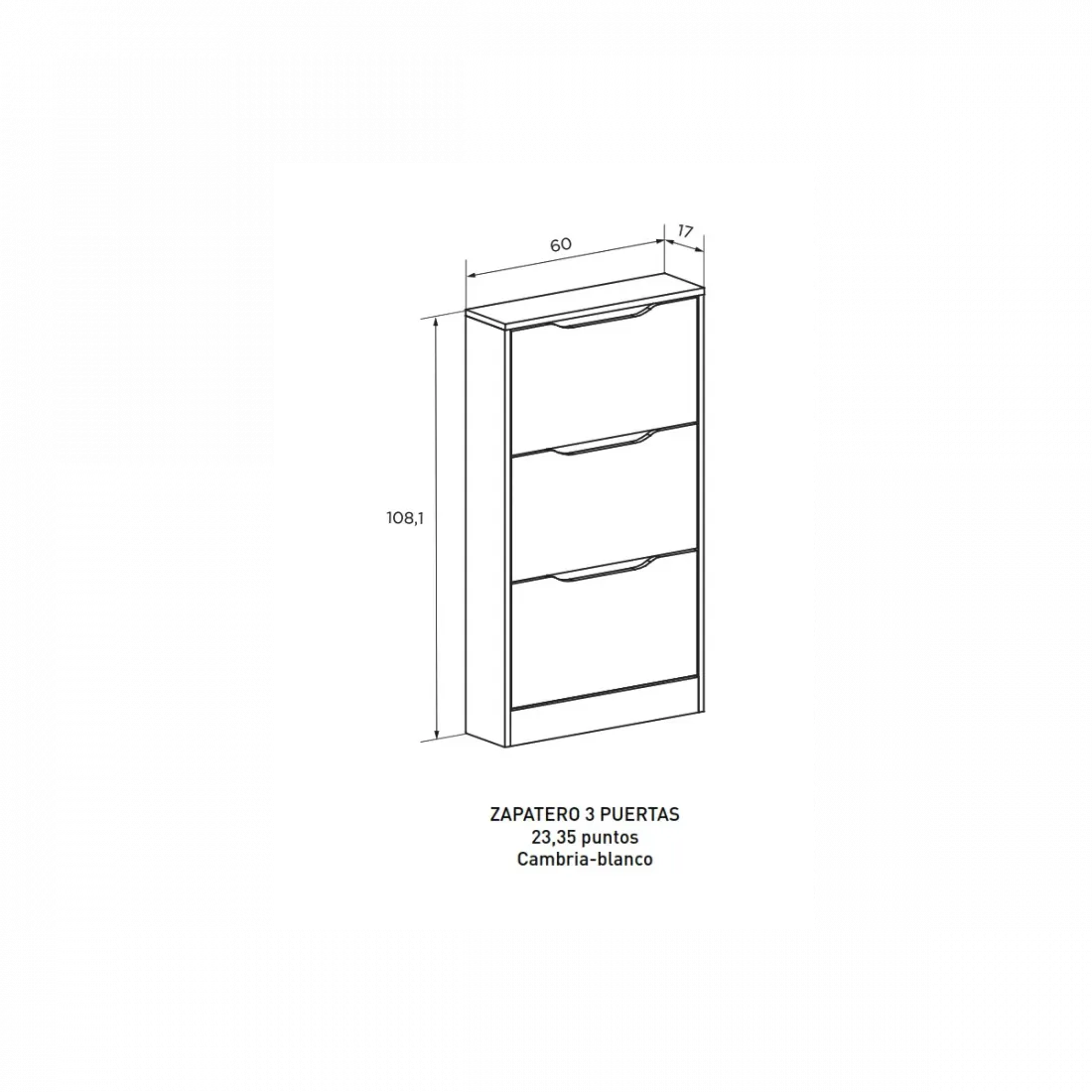ZAPATERO 3 PUERTAS MODELO CHAMPION CAMBRIA BLANCO